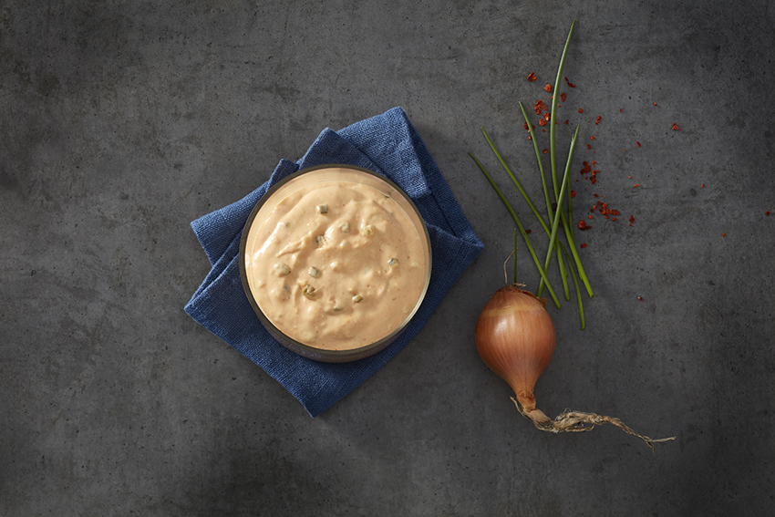 Geschmackvoll und würzig: Kleine Zwiebelstückchen und die leichte Curry-Note machen unsere „Frit-& Burger Sauce“ zu einem wahren Allrounder. Artikel-Nr.: 278817 VPE: 12 x 875 ml